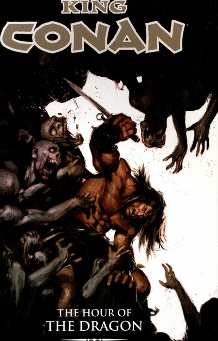 This is an advance order item. Dethroned by a traitorous alliance backed by a resurrected sorcerer, Conan-the barbarian king of Aquilonia-must fight his way out of a villain's dungeon and across battle-ravaged countries, seeking a mysterious gem that will help him reclaim his kingdom! Collects issues #1-#6 of King Conan: The Hour of the Dragon. A perfect companion to King Conan: The Scarlet Citadel and King Conan: The Phoenix on the Sword!