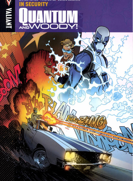 This is an advance order item. Your order is due by January 23 for this product. So... two superheroes, a clone, and a goat move into a junior two-bedroom... Imbued with unpredictable new superpowers in the wake of an energy experiment gone wrong, Eric and Woody Henderson have just had their lives turned upside down - and they need to 'klang' together every 24 hours or else their atoms will disperse. So what do you do when the most annoying person in your life is also the only thing keeping you alive? You move in with him! And his goat. And his barely legal clone girlfriend. Besides, every team of heroes needs a secret headquarters...and this one has a slightly used hot tub. Plus: Quantum gets a job - and meets his first true blue super-villain! Collecting QUANTUM AND WOODY #5-8 by acclaimed writer James Asmus (Thief of Thieves) and rising star Ming Doyle (Mara), get ready to kiss that security deposit goodbye when the world's worst superhero team shacks up and breaks loose for an all-new adventure from the fringes of the Valiant Universe!