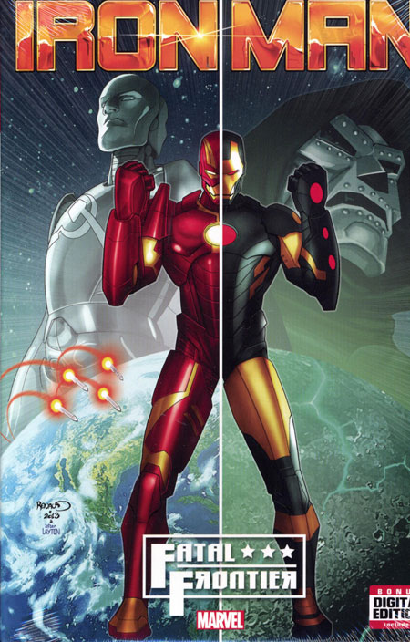 **Pre-Order Special Pricing on orders placed by February 29th. Original price: $21.69. ** This is an advance order item. Your order is due by February 27 for this product. It's the first print edition of the story previously available only in Marvel's innovative Infinite Comics format! The moon has declared war on Earth! After stopping a missile aimed at Hollywood, Iron Man travels to the moon to investigate, and clashes with the robotic Udarnik and his moon-based society! And when Iron Man's old foe Endotherm attacks, Tony realizes a new moon element called Phlogistone drives those who use it insane. But what is Cortex Incorporated hiding from Iron Man, and is Tony at risk of losing his mind? Tony's old mentor Eli Warren has abused Extremis in his desperate search for Phlogistone, and now Dr. Doom has joined the hunt! How far will Iron Man go to stop the spread of the new element? Collecting IRON MAN: FATAL FRONTIER INFINITE COMIC #1-13.