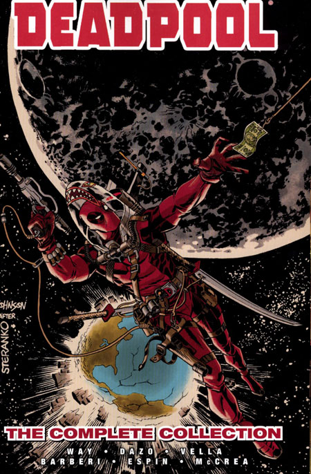 This is an advance order item. Your order is due by February 27 for this product. Deadpool heads into space to increase his intergalactic cred. Will taking on galactic assassin Macho Gomez and the immense Id the Selfish Moon cement Deadpool as the solar system's best, most ruthless mercenary? Not as far as his 'old friends' back on Earth are concerned - Hydra Bob, Big Bertha, Taskmaster and Blind Al all want to claim a piece of his hide! Deadpool flirts with both mortality and sanity as he takes on the Incredible Hulk (hoping to die!) and is locked up in an asylum (that could actually help him!) - but Wade's biggest foe turns out to be an 'evil twin' made up of his own discarded body parts! Can Deadpool convince the authorities that there's an even crazier, less principled version of him out there? Plus: Deadpool - the Musical! Collecting DEADPOOL (2008) #32-49, #33.1 and #49.1.