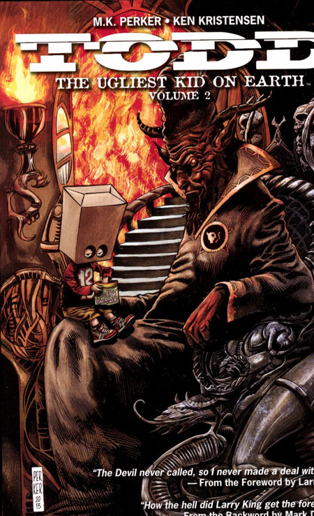 (W) Ken Kristensen (A/CA) M. K. Perker STORY: KEN KRISTENSEN ART / COVER: M.K. PERKER Collects TODD, THE UGLIEST KID ON EARTH #5-8 The politically incorrect comedy that Ain't It Cool says 'clubs the baby seal of life.' Its second hilarious story arc is now in trade paperback format! After uncovering a satanic cult run by Charlie Rose at PBS, Peggy gets kidnapped, Gus goes on the lam, and Todd warms up to the wrong people...in Hell.
