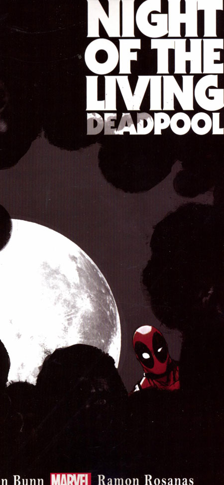 Deadpool awakes from a food coma to find - the zombie apocalypse has occurred! Now, can the Merc with a Mouth avoid becoming the Merc in their mouths?! Thrill to the sight of a hideous, rotting-fleshed monster shambling about the landscape - and don't forget all the zombies he's fighting! (Get it? That first one referred Deadpool. Who says zombie horror comics can't have a little humor?) Cullen Bunn, writer of the fan-favorite Deadpool Killogy, brings us one of Deadpool's darkest tales ever - and we're not just saying that because it's in black and white (and red)! You've been warned, my friends! So ring the dinner bell and nail shut the door as Deadpool takes on the ambulatory undead! Collecting NIGHT OF THE LIVING DEADPOOL #1-4.