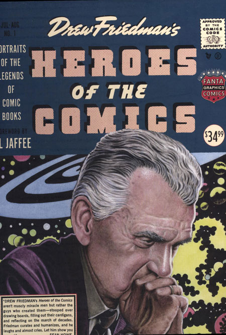 DREW FRIEDMAN TURNS HIS KEEN EYE TOWARDS THE GREAT COMIC BOOK ALL-STARS Featuring approximately 75 full-color portraits of the pioneering legends of American comic books, including publishers, editors, and artists from the industry's birth in the '30s, through the brilliant artists and writers behind EC Comics in the '50s. All lovingly rendered and chosen by Drew Friedman, a cartooning legend in his own right. Featuring subjects popular and obscure, men and women, as well as several pioneering African-American artists. Each subject features a short essay by Friedman, who grew up knowing many of the subjects included (as the son of writer Bruce Jay Friedman), including Stan Lee, Harvey Kurtzman, Will Eisner, Mort Drucker, Al Jaffee, Jack Davis, Will Elder, and Bill Gaines. More names you might recognize: Barks, Crumb, Wood, Wolverton, Frazetta, Siegel & Shuster, Kirby, Cole, Ditko, Wertham… it's a Hall of Fame of comic book history from the man BoingBoing.com calls 'America's greatest living portrait artist!'