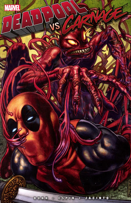Come one, come all, for the bloodiest showdown the Marvel Universe has ever seen! It's two red-suited madmen for the price of one when Deadpool takes on Carnage in the ultimate battle of good-crazy vs. bad-crazy! Will Carnage spread Deadpool all over the landscape? Or will Deadpool talk the scarlet sociopath's ear off? Find out in this blood-soaked brouhaha for the ages! Plus: Cletus Kasady is behind bars, and the Carnage symbiote is in quarantine! But we all know that's never going to last, right? Cletus has been evaluated, imprisoned and even lobotomized. Carnage has been sampled, cloned, poked and prodded. But they've had enough! It's time to get the band back together! It's a return to bloody, murderous form for the deadliest killer in the Marvel Universe! Collecting DEADPOOL VS. CARNAGE #1-4 and SUPERIOR CARNAGE ANNUAL #1.