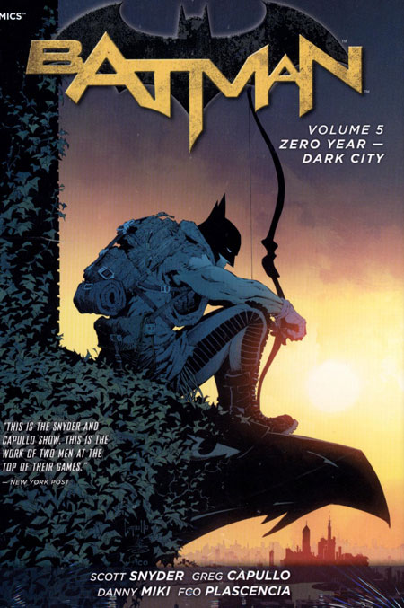 (W) Scott Snyder (A) Greg Capullo, Danny Miki (CA) Greg Capullo Before the Batcave and Robin, The Joker and the Batmobile, there was ZERO YEAR. The Riddler has plunged Gotham City into darkness. How will a young Dark Knight bring his beloved hometown from the brink of chaos and madness and back into the light? This final ZERO YEAR volume collects BATMAN #25-27 and 29-33.