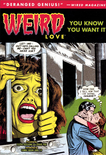 Your Valentine likes it hardcover…here's the must-give book for them (or just get it for your depraved self)! 'Weird Love: All You Need Is Weird Love' collects the first three issues of the so-bad-it's-good comic book that is the buzz of geekdom! Plus a raging bonus showcase of the most bizarre and sexy romance comic book covers! Revealing foreword by Craig Yoe and Clizia Gussoni who 13th Dimension calls, 'The Masters and Johnson of comics!' Fascinating introduction by Comic Book Girl 19. These vintage stories will blow your mind: 'I Fell for a Commie!', 'Love of a Lunatic!', 'Yes, I was an Escort Girl!', 'Love, Honor and Swing, Baby!', Gangster's Girl', 'Too Fat to Frug!'…and MORE!