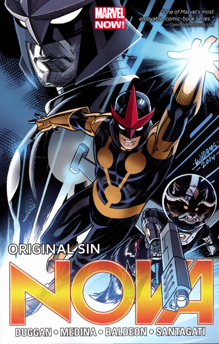 (W) Gerry Duggan (A) Paco Medina & Various (CA) David Williams ORIGINAL SIN tie-in! The Watcher's eye presents a pair of mysteries: Was Nova's father a murderer? And what is the secret origin of the Black Novas? Sam Alexander grieves for the Watcher, and turns to a friend for help - everyone's favorite Guardian of the Galaxy, Rocket Raccoon! As the secrets of the Black Novas and Sam's dad are revealed, Sam's world is torn apart - but can he come out of this stronger? Plus: When the Alexander home is threatened, there may not be anything that Nova can do to help out. And when Halloween rolls around, Nova joins the students of the Jean Grey School for trick-or-treating - and trouble! Collecting NOVA (2013) #17-22. Rated T