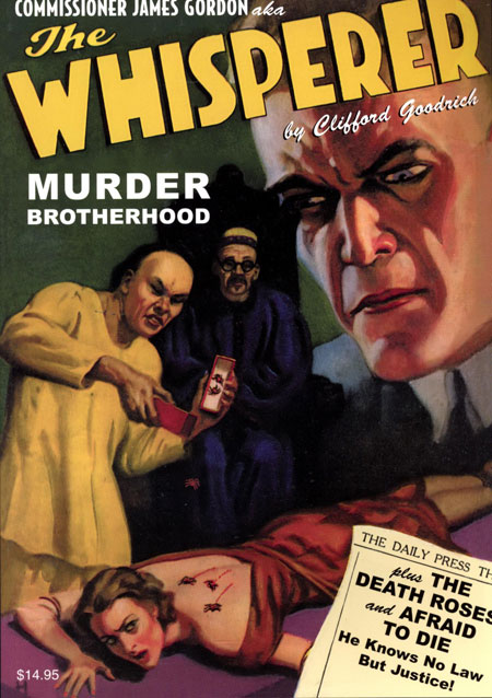 Sanctum Books completes its reprinting of the original 1936-37 pulp series by Lawrence Donovan writing as 'Clifford Goodrich' that inspired Batman's first supporting character! First, an ingeniously concealed map holds the answer Police Commissioner James Gordon needs to stop flower-festooned serial slayings in 'The Death Roses.' Then, The Whisperer invades China Hill to smash the weird 'Murder Brotherhood.' Finally, it's up to The Whisperer to discover why a philosophical Asian was 'Afraid to Die' in a novelette by Alan Hathway from the back pages of The Shadow Magazine! Plus, Norgil the Magician takes the stage in a magical mystery by The Shadow's Maxwell Grant, plus a classic Whisperer graphic story from the Golden Age of Comics!