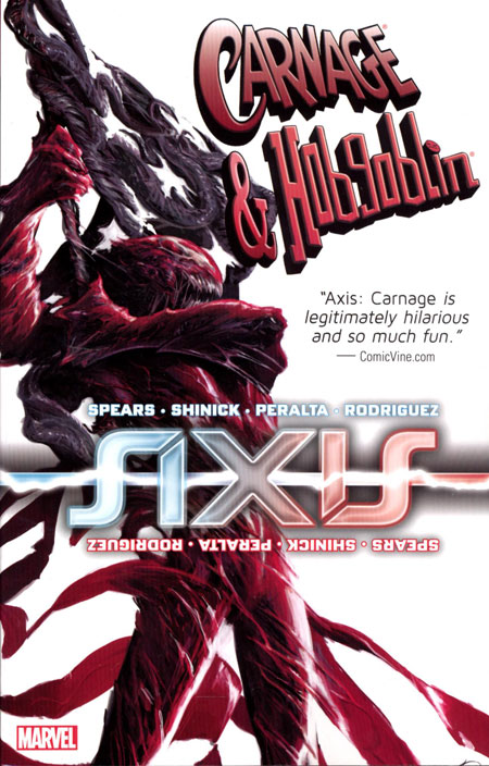 Two of Spider-Man's deadliest foes, Hobgoblin and Carnage, take center stage - as heroes! In the wake of AXIS, Roderick Kingsley, the original Hobgoblin, is back in the suit and back in New York with a new mission: to make YOU the best you can be! But when Phil Urich, the former Hobgoblin, tries to get rid of Kingsley for good, will the heroic Hobgoblin be forced to revert to his wicked ways? Meanwhile, if symbiotic serial killer Carnage has given up villainy, then why has he kidnapped one of New York City's most beloved news anchors? The Sin-Eater returns, with a surprising mission - and if all this isn't enough for Carnage to worry about, he's still on the authorities' most-wanted list! The effects of AXIS continue in this surprising saga - don't miss it! Collecting AXIS: HOBGOBLIN #1-3 and AXIS: CARNAGE #1-3. Rated T+