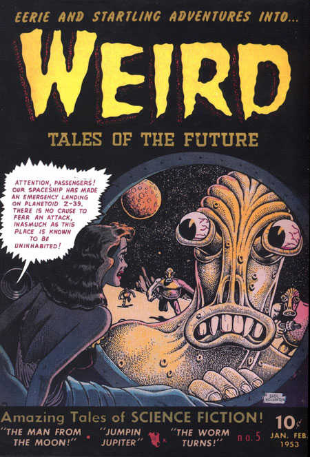 Bug-eyed monsters, two-timing homicidal husbands and wives, rampaging corpses and even one or two cases of severe halitosis or crossed-eyes, this title has the lot, including a better-than-healthy dose of the one and only Basil Woverton. Just the covers alone have had the gang at PS muttering in their sleep just crossing off the days that this baby would come along. And here it is. This is the way comicbooks should be! Collection Weird Tales of the Future #1-8, March 1952 to July 1953.