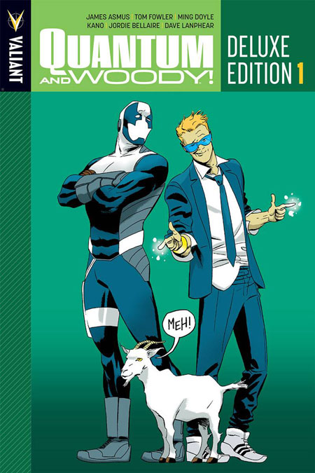 The most nominated series of the 2014 Harvey Awards! From award-winning writer James Asmus (Thief of Thieves, Gambit) and artists Tom Fowler (Venom), Ming Doyle (Mara), Kano (Gotham Central), and more, the origin of the world's worst superhero team starts right here in Quantum and Woody's first deluxe oversized hardcover collection! Once upon a time, Eric and Woody Henderson were inseparable. Adopted brothers. Best friends. Brilliant minds. Years later, they are estranged siblings, petty rivals, and washedup failures. But when their father's murder leads them into the throes of a life-altering scientific accident, Eric and Woody will find themselves with a whole new purpose - and a perfectly legitimate reason to wear costumes and fight crime. Go big or go home, folks! Quantum and Woody are coming! Collecting QUANTUM AND WOODY #1-12 and QUANTUM AND WOODY: THE GOAT #0, the Quantum and Woody Deluxe Edition Book One oversized hardcover also features more than 20 pages of special features, including rarely seen designs, artwork, and behind-the-scenes bonus material by Tom Fowler (Hulk:Season One), Ming Doyle (Mara), Andrew Robinson (The Fifth Beatle), Ty Templeton (Batman '66), Ryan Sook (Seven Soldiers) and many more!