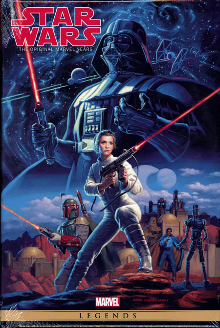 (W/A) Various (CA) Greg Hildebrandt The very first STAR WARS comic-book series continues! After the events of THE EMPIRE STRIKES BACK, loveable rogue Han Solo is lost, frozen in carbonite. But as the search for Solo begins, Imperial Forces and other troubles keep getting in the way. Princess Leia clashes with Darth Vader! Luke Skywalker goes on trial for treason! C-3PO and R2-D2 face danger on a droid moon! Lando Calrissian finds Cloud City deserted! If the Crimson Forever doesn't get the rebels, maybe the new Imperial super-weapon will! And a new member joins the gang, with a crush on a certain handsome Jedi! Meanwhile, the discovery of a gold statue of Han reveals a hidden story from his and Chewbacca's past. And who are the Hoojibs? It's Star Wars in the Mighty Marvel Manner! Collecting STAR WARS (1977) #45-78 and ANNUAL #2. Rated T