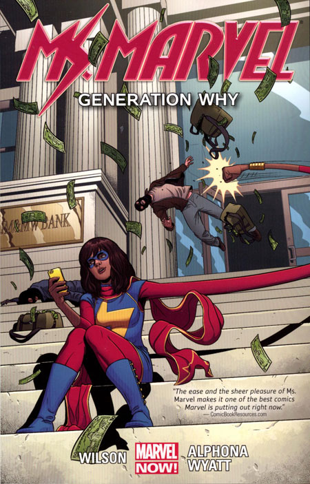 (W) C. Willow Wilson (A) Jake Wyatt, Adrian Alphona (CA) Jamie McKelvie Who is the Inventor, and what does he want with the all-new Ms. Marvel and all her friends? Maybe Wolverine can help! If Kamala can stop fan-girling out about meeting her favorite super hero, that is. Then, Kamala crosses paths with Inhumanity - by meeting the royal dog, Lockjaw! But why is Lockjaw really with Kamala? As Ms. Marvel discovers more about her past, the Inventor continues to threaten her future. Kamala bands together with some unlikely heroes to stop the maniacal villain before he does real damage, but has she taken on more than she can handle? And how much longer can Ms. Marvel's life take over Kamala Khan's? The fan-favorite, critically acclaimed, amazing new series continues as Kamala Khan proves why she's the best (and most adorable) new super hero there is! Collecting MS. MARVEL (2014) #6-11. Rated T+