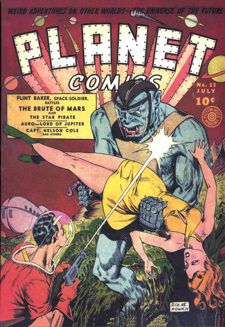 PS Artbooks is going all 'out of this furshlugginer world' with the first volume of the awe-filled Planet Comics that appeared from Fiction House over a thireteen year period ending in 1953. They're all here - Flint Baker, Reef Ryan, The Space Rangers, Gale Allen, Star Pirate, Mysta of the Moon, Norge Benson, plus many more, and a bevy of the most scantily-clad females you're likely to see outside of Silvio Dante's Bada Bing strip joint in the Sopranos. Collects issues #13-16, July 1941 to January 1942.