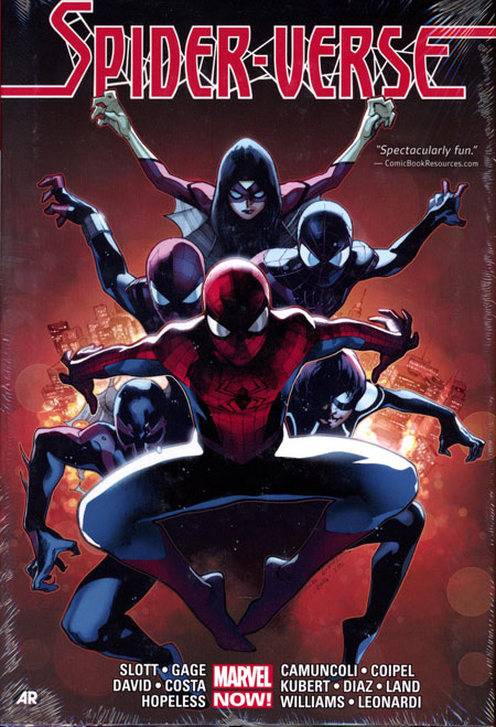 (W/A) Various (CA) Olivier Coipel When the evil Inheritors begin exterminating spider-characters throughout the multiverse, every single Spider-Man ever is needed to save the day! An interdimensional spider-army gathers to fight Morlun and his deadly family, but none of them is safe as the Prophecy comes to fruition! What will this brutal war for survival mean for Peter Parker and the rest of the spiders? Starring the Superior Spider-Man, the Ultimate Universe's Miles Morales and Jessica Drew, Spider-Man 2099, Spider-Woman, Silk, Kaine, Scarlet Spider, MC2's Spider-Girl, Spider-Man Noir, Spider-Man 1602, Spider-Ham, Spider-Monkey, Lady Spider, Spider-Punk, Spider-UK, a spider-powered Gwen Stacy…and hundreds more, from the beloved to the obscure! Collecting AMAZING SPIDER-MAN (2014) #7-15, SUPERIOR SPIDER-MAN #32-33, SPIDER-VERSE #1-2, SPIDER-VERSE TEAM-UP #1-3, SCARLET SPIDERS #1-3, SPIDER-WOMAN (2014) #1-4, SPIDER-MAN 2099 (2014) #6-8 and material from FREE COMIC BOOK DAY 2014 (GUARDIANS OF THE GALAXY) #1. Rated T