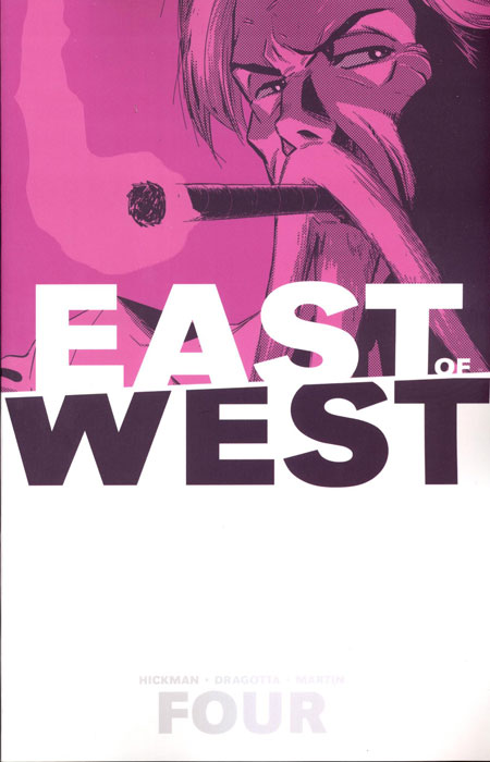 It's the fourth volume of the Eisner-nominated, best-selling EAST OF WEST. 'WHO WANTS WAR?' sees YEAR TWO of the Apocalypse kick into high gear. Collects EAST OF WEST #16-19, & EAST OF WEST: THE WORLD