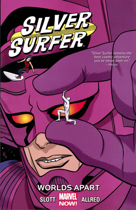 Everything up until now was chance and fate, but now it's decided. Dawn has earned her spot on the board, and she and the Surfer are going to explore the universe together. And the universe holds many wonders - including Planet Prime, the most perfect planet in the universe; a lone lighthouse, floating in the void at the edge of all space and time; and an unlikely planet with a population of 666 billion beingsā¦each from a different race! But can they survive the threats of Warrior One, the Greatest Monster in the Galaxy, and a very strange spacefaring family? And witness the Silver Surfer's soul laid bare in a cosmic clash unlike any you have ever seen! It's a cosmic tale of triumph and tragedy as the Surfer takes on his former master: Galactus! Collecting SILVER SURFER (2014) #6-10.