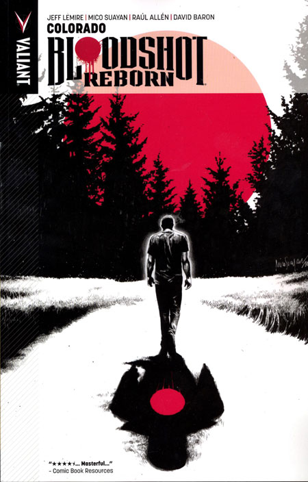 New York Times best-selling writer Jeff Lemire (THE VALIANT, Descender) and red-hot rising star Mico Suayan (HARBINGER, Moon Knight) deliver an all-new ongoing series for Valiant's most unrelenting hero! Bloodshot's nanites made him a nearly unstoppable killing machine. His enhanced strength, speed, endurance, and healing made him the perfect weapon, and he served his masters at Project Rising Spirit - a private contractor trafficking in violence - very well. Now, Bloodshot is a shadow of his former self. He lives in self-imposed exile, reeling from the consequences of his past life and the recent events that nearly drove him mad. But when a rash of shootings by gunmen who appear to look just like Bloodshot begin, his guilt will send him on a mission to stop the killers, even if it means diving head-long into the violence that nearly destroyed him. Start reading here as visionary creators Jeff Lemire and Mico Suayan kick-off a brand-new beginning for the cutting-edge commando called Bloodshot...and plunge him to his darkest, bloodiest, most mind-bending depths yet. Collecting BLOODSHOT REBORN #1-5.