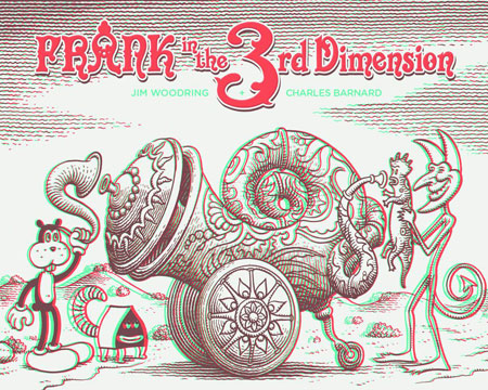 See Frank as you've never seen him before. Frank in the 3rd Dimension uses the most technologically advanced 3D ever produced and is an experience that has to be savored to be believed. No red and blue-lensed glasses are used. Instead, the 3D process involves over 150 layers per drawing in order to round and 'sculpt' each image into full 3D. The results are mind-staggering. Frank in the 3rd Dimension is a series of Jim Woodring's loveliest pictures - 32 vignettes, dioramas and psychedelic moments to be mused and mulled over.