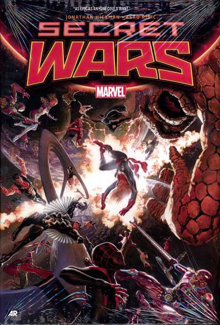 The Marvel Universe is no more! The interdimensional Incursions have eliminated each and every alternate universe one by one. And now - despite the best efforts of the scientists, sages and superhumans - the Marvel Universe and Ultimate Universe have collided…and been destroyed! All that exists in the vast empty cosmos is a single, titanic patchwork planet made of the fragmented remains of hundreds of devastated dimensions: Battleworld! And the survivors of this multiversal catastrophe all bend their knee to Battleworld's master: Doctor Doom! What strange creatures inhabit this world? Which familiar faces will return? And what happens when Battleworld's various domains go to war? The Marvel Universe is dead - and the victors of the Secret Wars will determine what comes next! Collecting SECRET WARS (2015) #1-9 and material from FREE COMIC BOOK DAY 2015: SECRET WARS #0. Rated T+