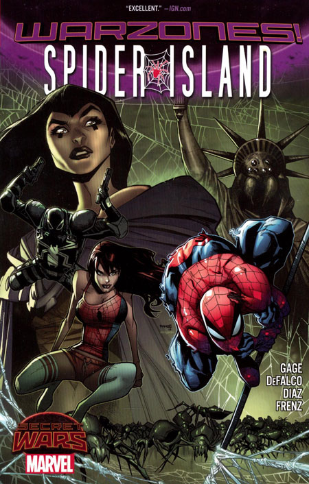 In the Battleworld zone known as Spider-Island, Peter Parker has lost - and the Spider Queen has turned Manhattan into an island of arachnid madness! With Spider-Man defeated and captive, does Flash Thompson - A.K.A. Venom - stand a chance? Venom and his squad of monstrous heroes wage all-out war on the Queen, but to reclaim a Manhattan completely overrun by her spider-army, Venom will need a little help from his friend. (Which friend? We'll give you a hint: thwip!) Venom and his allies take the fight straight to the Queen, but one among them will have to make the ultimate sacrifice! Plus: Mayday Parker and her amazing Spider-Family are back as we visit the MC2 patch of Battleworld! Collecting SPIDER-ISLAND (2015) #1-5. Rated T