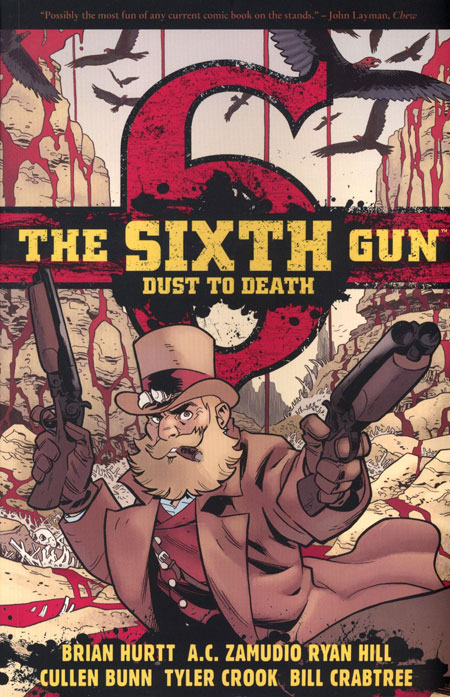 (W) Brian Hurtt, Cullen Bunn (A) Tyler Crook, A.C. Zamudio (CA) Brian Hurtt Two tales of The Sixth Gun! Two visions of the wild and weird west! Two stories of shamans, the Spirit World, magic pistols, and bounty hunters! Two quests that shape the lives of the heroes and villains of the greatest Old West Fantasy of all time! First, the reclusive witch Buzzard Wife gathers a Hunting Party for a treacherous journey into the fabled Valley of Death. Then, we follow Billjohn O'Henry on a heartbreaking adventure to save his beloved daughter. From the House of Death to a Wild West Medicine Show, these yarns take aim on heretofore unexplored realms of The Sixth Gun!