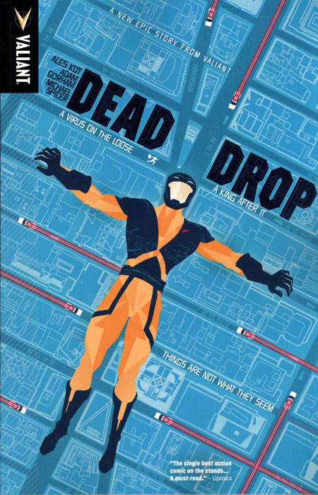 FOUR HEROES. FOUR STORIES. ONE TICKING CLOCK. There is a secret black market in New York. It is hidden in plain sight - in our streets, trains, and restaurants. Those who know how to navigate it exchange secrets of extraordinary nature. But when the secret in circulation is a biological weapon derived from Vine technology, the gloves are off - and the most extraordinary agents are released to stop the disaster before it occurs. Otherwise, in less than thirty minutes, there will be no world to come back to. X-O Manowar, Archer, Neville Alcott, Detective Cejudo and Betamax are ready to save the world. Red-hot writer Ales Kot (Bucky Barnes: The Winter Soldier) and rising star Adam Gorham (Zero) go in deep with an unlikely cast of superhuman operators for an undercover conspiracy action thriller in the darkest corners of the Valiant Universe. Collecting DEAD DROP #1-4.