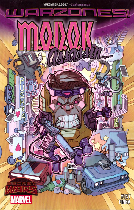In Killville - a Battleworld realm populated by fearsome thieves, murderers and ne'er-do-wells - there exists one who is a HEAD above the rest: M.O.D.O.K., the Mental Organism Designed Only for Killing! That's right, the Merc with a Maw is open for business - but his next job may be biting off more than he can chew (which is a lot)! When a Thor crash-lands in Killville, M.O.D.O.K. sets out to do what he does best - but impossibly finds himself (giant) head over (tiny) heels in love! With the Thor he loves targeted by another ruthless Killville mercenary and a larger conspiracy becoming apparent, can M.O.D.O.K. keep ahead of his rivals, save the love of his life and uncover the truth? Will M.O.D.O.K. save the day? One thing's for sure: He will live up to his design! Collecting M.O.D.O.K. ASSASSIN #1-5. Parental Advisory