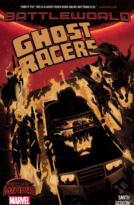 (W) Felipe Smith, Jim Starlin (A) Various (CA) Francesco Francavilla Dare you brave the hellish arena that provides the ultimate in adrenaline-fueled entertainment on Battleworld - Arcade's Killiseum? It's the scorching-hot track where cursed souls race at the speed of sin, everything goes, and the only rule is: don't even think there are any rules! As Ghost Riders both fiendishly familiar and blazingly bizarre go skull-to-flaming-skull, first is first and anywhere else is nowhere. Robbie Reyes, Johnny Blaze, Dan Ketch, Carter Slade, Alejandra Blaze and Zero Cochrane assemble on the starting line! Choose your favorite, and watch them go to war! But on this track of treachery, can anyone truly emerge victorious? Plus: Johnny faces a classic Deathrace! And will Robbie Reyes fall in love with Ms. Marvel herself, Kamala Khan? Collecting GHOST RACERS #1-4, GHOST RIDER (1973) #35 and material from SECRET WARS: SECRET LOVE #1. Rated T