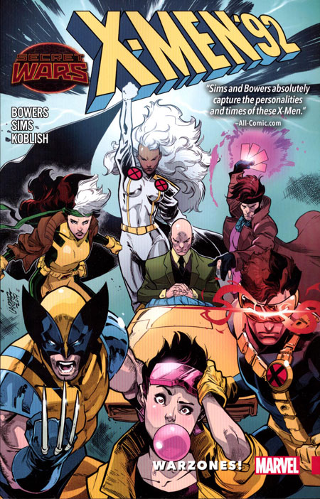 Revisit a blue-and-golden age for the X-Men in Battleworld's most animated realm! The '90s-era team is as uncanny as ever: Professor X, Cyclops, Storm, Wolverine, Rogue, Gambit and - yes! - Jubilee. And when the Clear Mountain Project purports to offer evil mutants a chance at rehabilitation, it's up to the X-Men to investigate! As things go wrong, they'll face some of their decade's fiercest foes, like Cyber and Omega Red - but who on Battleworld is the Shadow Queen?! With the X-Men in deep trouble, will anyone step up to save the domain of Westchester from a future of fear and hatred? How about an X-Force '92 lineup featuring Cable, Deadpool, Domino, Psylocke, Archangel and Bishop? Could this totally tubular tale be any more '90s? Collecting X-MEN '92 (2015) #1-4. Rated T