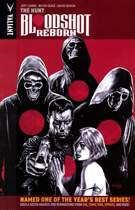 (W) Jeff Lemire (A) Butch Guice (CA) Mico Suayan 'THE HUNT' IS ON! Bloodshot is on the hunt. Determined to stop the violent reign of terror that plagues Colorado, Bloodshot journeys across the Rocky Mountains to destroy the remaining nanites that have caused mass murderers to spring up across the state. But will the drugs, booze, and insane visions rattling around his head put an end to his journey before it begins? Start reading here as New York Times best-selling writer Jeff Lemire (THE VALIANT, Descender) and Eisner Award-nominated artist Butch Guice (NINJAK, The Winter Soldier) begin the second staggering story arc of the chart-topping new series that Entertainment Weekly calls 'a subversive new take on Valiant's resident unkillable killing machine.' Collecting BLOODSHOT REBORN #6-9.