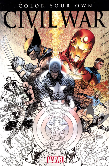 (W/A) Various (CA) TBD Whose side are you on? Colored pencils, crayons or felt-tip pens? Reach a decision across page after page of all-out costumed warfare featuring Steve McNiven's exquisitely rendered artwork just waiting for you to add the color! Captain America and Iron Man are the feuding Avengers leading the two sides of heroes that battle it out over the rights and wrongs of superhuman registration. This war is far from civil as friendships and teams are torn apart, and one fact is certain: The issues are anything but black-and-white. Luckily, that's where you come in! From Shellhead's gleaming red and gold to the stars and stripes of the Sentinel of Liberty, these monochromatic Marvels are crying out to be brought to life in an eye-popping kaleidoscope of conflict. The battle lines have been drawn - now, can you stay inside them? All Ages