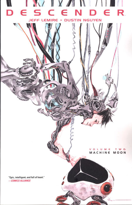 Young robot boy TIM-21 and his companions struggle to stay alive in a universe where all androids have been outlawed and bounty hunters lurk on every planet. DESCENDER is a rip-roaring and heart-felt cosmic odyssey, pitting humanity against machine and world against world to create a sprawling epic. Collects DESCENDER #7-11