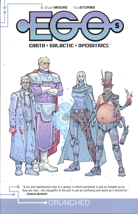 The chaotic super-team of the future must unravel a galactic mystery on two fronts: the lawless planet Tortuga and the stuffy halls of EarthGov. 'Has it all…A taste of science fiction, law of physics, a tale of suspense, a humorous robot with attitude, action and a taste of sabotage to top it off!' -Comic Crusaders Collects EGOs #5-9 & #4.5