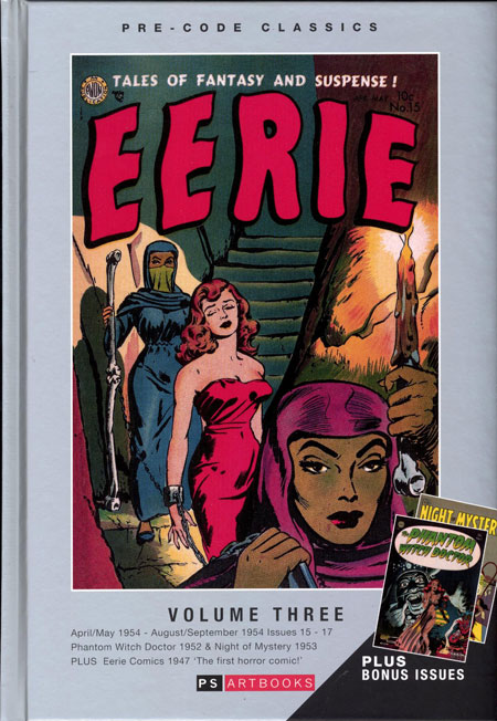 Hey kids, come on! What're ya waitin' for! Moe Marcus, Fred Kida, Wallace Wood, Louis Ravielli, Henry C. Kiefer, and Joe Kubert? Avon's rightly revered Eerie run kicking off in 1951, and you want me to say something that's gonna make you wanna buy this volume? Gimme a break, will ya! Just get your money out and save us all a lot of time. Collects issues #15-17, April/May 1954 to August/September 1954 plus bonus issue of Eerie Comics (1947), Phantom Witch Doctor (1952), and Night of Mystery (1953).