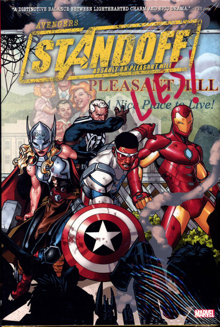 On his 75th anniversary, Captain America is about to face a challenge unlike any other. Prepare for an assault on…Pleasant Hill! Three shield-wielders past and present - Steve Rogers, Bucky Barnes and Sam Wilson - find themselves in a standoff, with high and very personal stakes. And as this tense conflict quickly escalates out of control, it draws in three teams of Avengers, the Agents of S.H.I.E.L.D. and more! But it all begins in an idyllic community with friendly neighbors…and a terrible, dark secret. What is going on behind Pleasant Hill's closed doors? Collecting AVENGERS STANDOFF: WELCOME TO PLEASANT HILL; AVENGERS STANDOFF: ASSAULT ON PLEASANT HILL ALPHA and OMEGA; AGENTS OF S.H.I.E.L.D. #3-4; UNCANNY AVENGERS (2015B) #7-8; ALL-NEW, ALL-DIFFERENT AVENGERS #7-8; NEW AVENGERS (2015) #8-10; CAPTAIN AMERICA: SAM WILSON #7-8; ILLUMINATI #6; and HOWLING COMMANDOS OF S.H.I.E.L.D. #6. Rated T+