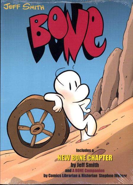 Twenty-five years after the first black & white issue of the self-published comic book Bone appeared on comic shop shelves, and over a decade since the concluding chapter comes a new (and completely superfluous!) adventure featuring the Bone cousins! Ride along with the boys and their friend Bartleby the Rat Creature as they brave the dangerous journey across the desert back toward Boneville in their rickety cow cart. Creator Jeff Smith is back for another laugh with Fone Bone, Phoney Bone, and Smiley! Also included is the complete text of The Bone Companion fully illustrated for the first time! Plus rare behind the scenes photos and memories, and an afterword by the author thanking the comics community and the readers.