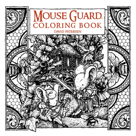 Artist: David Petersen Cover Artist: David Petersen Synopsis: ' Experience David Petersen's beloved comic series Mouse Guard with this lush coloring book. ' Featuring over 80 black-and-white illustrations showcasing the intricate detail of the environments, cities, and characters from across the Mouse Territories. ' In Mouse Guard, mice struggle to live safely and prosper amongst harsh conditions and a host of predators. Thus the Mouse Guard was formed: more than just soldiers, they are guides for common mice looking to journey without confrontation from one village to another. They see to their duty with fearless dedication so that they may not simply exist, but truly live.