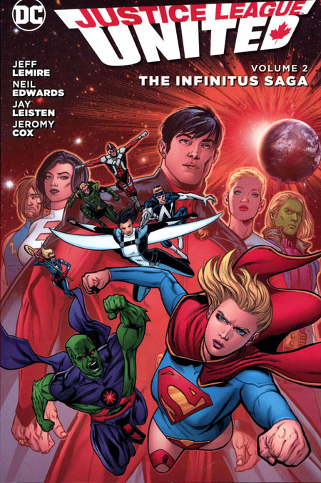 (W) Jeff Lemire (A) Neil Edwards, Jay Leisten (CA) Andrew Robinson The Infinitus Saga begins as the Legion of Super-Heroes arrives with the news that the 31st century has been destroyed! It's up to the Justice League United to save the future! Collects JUSTICE LEAGUE UNITED #6-10, JUSTICE LEAGUE UNITED ANNUAL #1, JUSTICE LEAGUE UNITED: FUTURES END #1, and JUSTICE LEAGUE: FUTURES END #1.