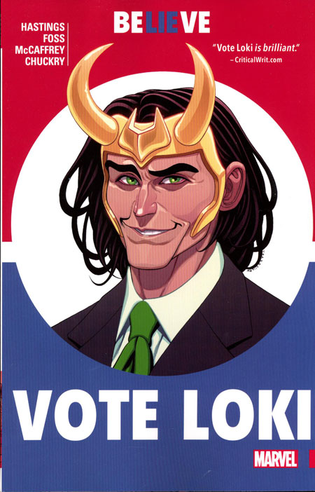 Loki is many things: god, trickster, brother, son, villain, even hero. Now he wants to add one more title to the list: President of the United States! That's right, the God of Lies wants to be ruler of the free world! But is this just another scheme? One fact is certain: With Loki's winning smile and silver tongue on the campaign trail, this election just got a lot more interesting! He'll soon have the American people eating out of the palm of his hand, but can would-be President Laufeyson sway the media? And what will be his response when the heroes of Earth launch their attack ad? A crisis in Latveria offers Loki the chance to demonstrate his foreign policy…but surely he wouldn't cause a national catastrophe just for a little good press? Would he? Collecting VOTE LOKI #1-4 - plus the God of Mischief's classic first appearance from JOURNEY INTO MYSTERY #85, and his own retelling of the origin of Earth's Mightiest Heroes from AVENGERS (1963) #300. Rated T+