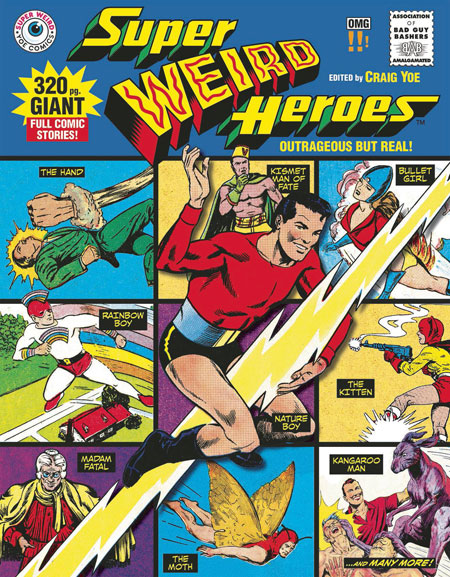 The first superhero book from Yoe Books/IDW! Over 500 pages, this ginormous tome is as thick as a brick and filled with tons of rare, full-color, never-before-reprinted comics! It's the most bizarro, wacky, wild, astonishing, eye-popping, jaw-dropping, book... EVAH! It's loaded with beyond-belief 'WHAT TH'?!?!' moments! Wait till you tell your friends what you discover in its pages! Super Weird Heroes will make you laugh, cry, and be immensely entertained! You're going to witness Public Domain superheroes like The Hand (yes, he's a giant hand), The Eye (you got it-he's a yuuuge eye), The Bouncer (this super-hero-in-a-skirt's power is bouncing)! And this is just a small fraction of the Super Weird Heroes you'll experience in this must-have book-there are over 65 super weird heroes in all!