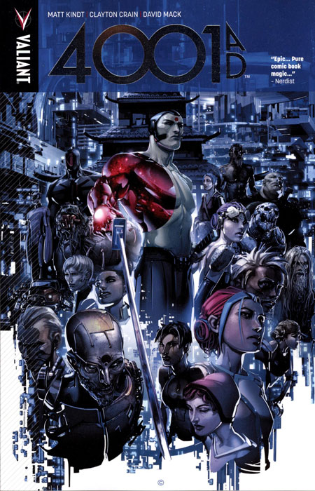 The most ambitious comics event of 2016 brings war to the 41st century - with Rai leading the charge! One hundred years from today, Father - the benevolent artificial intelligence that governs the island nation of Japan - will gain sentience. To defend its borders, Father will take drastic action by launching Japan into space...where its people will thrive in isolation, away from the overpopulated and resource-deprived planet below. Over the centuries, as New Japan orbits our increasingly unstable world, it will become a model society - one built on peace, prosperity... and Father's control. A thousand years from today, Father will create the first Rai, founding a lineage of technologically enhanced heroes engineered to defend New Japan and sworn to protect it from all enemies. For hundreds of years into the future, the Rai will single-handedly enforce New Japan's justice well...and serve Father without question. Now, at the dawn of 4001 A.D., the latest Rai is about to inherit the dark truth behind the origin of his kind...and discover the sinister secret at the heart of Father's existence. For New Japan to live, Earth must die...and as Rai challenges his former master for the first time in more than a millennium, the lone guardian of New Japan will be cast out of his own Father's kingdom... Exiled from the only realm he's ever known, Rai now walks the ravaged world of 4001 A.D. in search of forgotten heroes like himself... on a mission to collect the last surviving legends of a broken planet...and to forge a rebellion with the power to bring the most advanced civilization in history crashing back down to Earth. New York Times best-selling writer Matt Kindt (DIVINITY II) and superstar artist Clayton Crain (X-Force) bring their startling vision of the year 4001 A.D. to new heights...with the fate of New Japan floating in the balance! Collecting 4001 A.D. #1-4