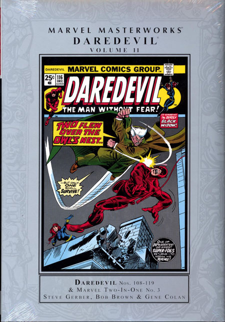 Daredevil teams up with not one but two stunning women of Marvel when Black Widow and Shanna the She-Devil join the battle against Black Spectre! Together, the three heroes must uncover the secret leaders of an organization bent on bringing the United States to its knees. It's a massive saga that will pull in heroes from across the Marvel Universe, including Moondragon and the ever-lovin' blue-eyed Thing - culminating in a battle royale on the White House lawn! Classic villains like Gladiator and Owl abound, and new enemies emerge when Death-Stalker hatches a plan that brings Man-Thing into the fray! Add in a return to Fogwell's Gym, where it all began, and what we have in store are true Marvel Masterworks! Collecting DAREDEVIL (1964) #108-119 and MARVEL TWO-IN-ONE (1974) #3. Rated T