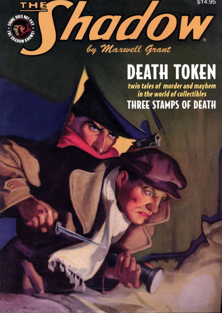 The Master of Darkness investigates collectible crime in two thrilling pulp novels. First, a supposedly insignificant French silver franc leads to murder and mayhem until The Shadow uncovers the sinister secret behind the 'Death Token.' Then, three foreign postage stamps cost the lives of three men, until Lamont Cranston infiltrates the underground collectors market to discover the mysterious mystery of the murderous buying power of the 'Three Stamps of Death.' Plus, a lost Shadow adventure from the Golden Age of Radio!