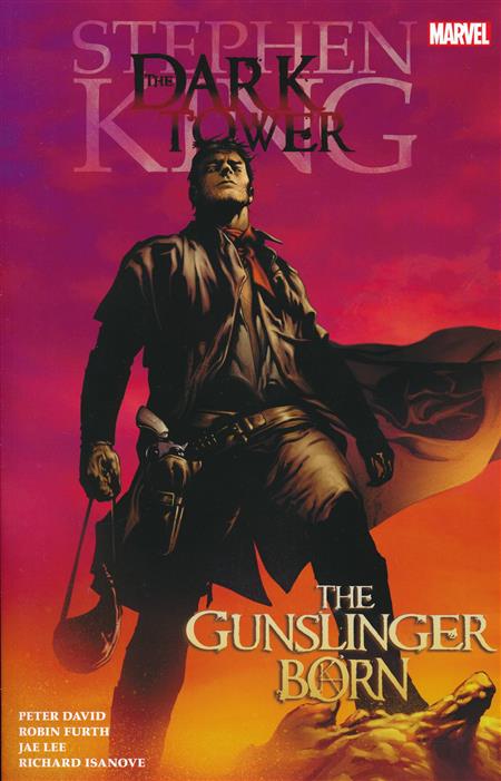 'The man in black fled across the desert, and the gunslinger followed.' With those words, millions of readers were introduced to Stephen King's Roland - an implacable gunslinger in search of the enigmatic Dark Tower, powering his way through a dangerous land filled with ancient technology and deadly magic. Now, in a comic book personally overseen by King himself, Roland's past is revealed! Sumptuously drawn by Jae Lee and Richard Isanove, adapted by longtime Stephen King expert Robin Furth (author of The Dark Tower: A Concordance), and scripted by New York Times Best Seller Peter David, this series delves deep into Roland's origins. It's the perfect introduction to this incredibly realized world, while longtime fans will thrill to adventures merely hinted at in the novels. Be here for the beginning of a modern classic! Collecting DARK TOWER: THE GUNSLINGER BORN #1-7. Parental Advisory