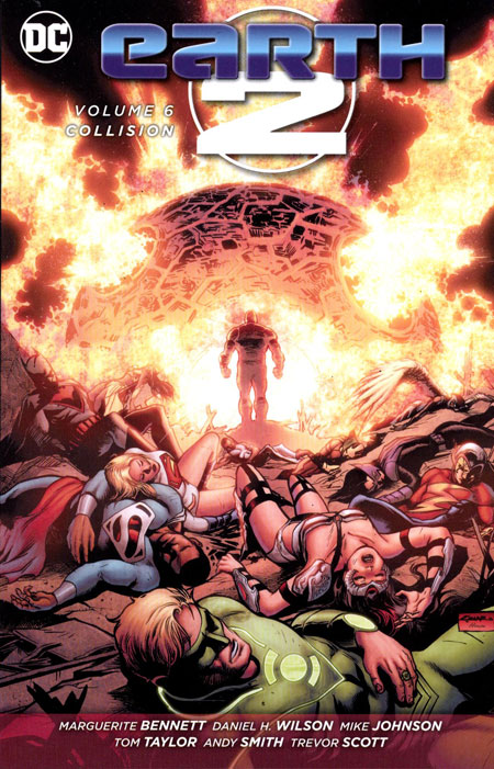 (W) Marguerite Bennett & Various (A) Andy Smith, Trevor Scott (CA) Yildiray Cinar The heroes of Earth-2 are faced with the end of their world as the forces of Apokolips invade! Millions are displaced in a crumbling world as the Flash, Hawkgirl, Green Lantern and the World Army struggles to stem the tide of destruction. But will their combined might be enough? Collects EARTH 2 #27-32.