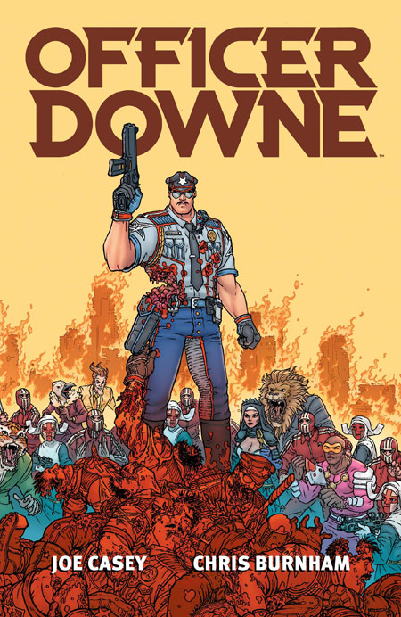 'An ALL-NEW VERSION of the ultimate orgy of righteous law enforcement ultra-violence is here -- just in time for the FEATURE FILM starring Kim Coates! You all know the story by now: Terrence Downe is the committed LA cop that'll keep coming back for more… even from beyond the grave! All-new BONUS FEATURES include: the complete SCREENPLAY of the feature film and hundreds of on-set/behind-the-scenes PHOTOS giving you an inside glimpse of the making of the film! OFFICER DOWNE is ™ and © Joe Casey & Chris Burnham, 2010. All Rights Reserved.