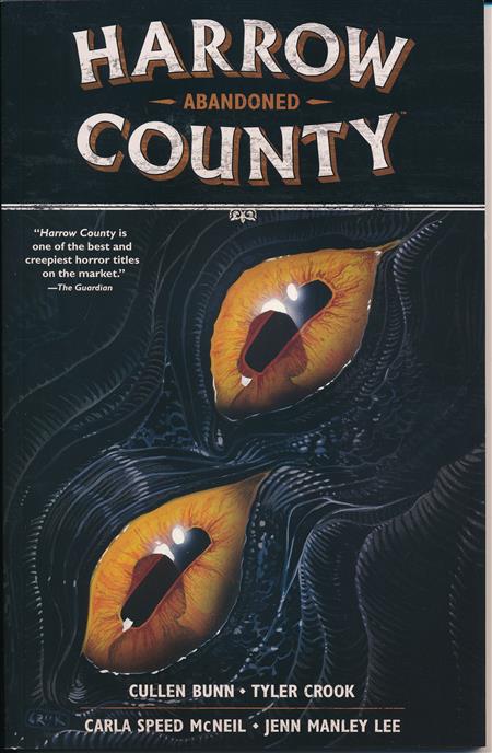 (W) Cullen Bunn (A) Tyler Crook, Carla Speed McNeil (CA) Tyler Crook The Abandoned, a giant monster with haunting yellow eyes, rarely leaves his ramshackle cabin deep in the woods of Harrow County. But it wasn't always so. And when hunters travel to Harrow County in search of big game, they get a lot more than they bargained for. As Emmy meets more visitors from the outside world, she discovers secrets of her own past and the very foundations of Harrow County. Collects issues #17-#20 of the award-winning horror comic.
