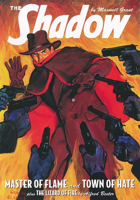 The Shadow battles murderous arsonists in thrill-packed pulp novels by Theodore Tinsley and Walter B. Gibson. First, the Knight of Darkness hunts a masked mastermind who uses a stolen invention to become the 'Master of Flame.' Then, Lamont Cranston and Margo Lane search for a sinister arsonist who attacks a 'Town of Hate' with deadly lightning from the sky! Finally, The Shadow must unmask the murderous firebug called The Salamander to clear an ex-con and discover the strange secret of 'The Lizard of Fire' in a lost radio adventure by science fiction legend Alfred Bester!