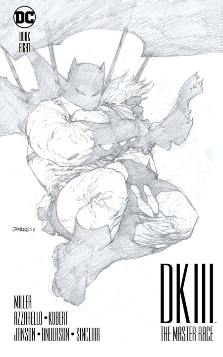 (W) Frank Miller, Brian Azzarello (A) Andy Kubert, Klaus Janson (CA) Jim Lee This oversized paper-over-boards COLLECTOR'S EDITION features both stories from DARK KNIGHT III: THE MASTER RACE #8 at the same size, with cover art that's a pencils-only version of Jim Lee's 1:500 variant cover.